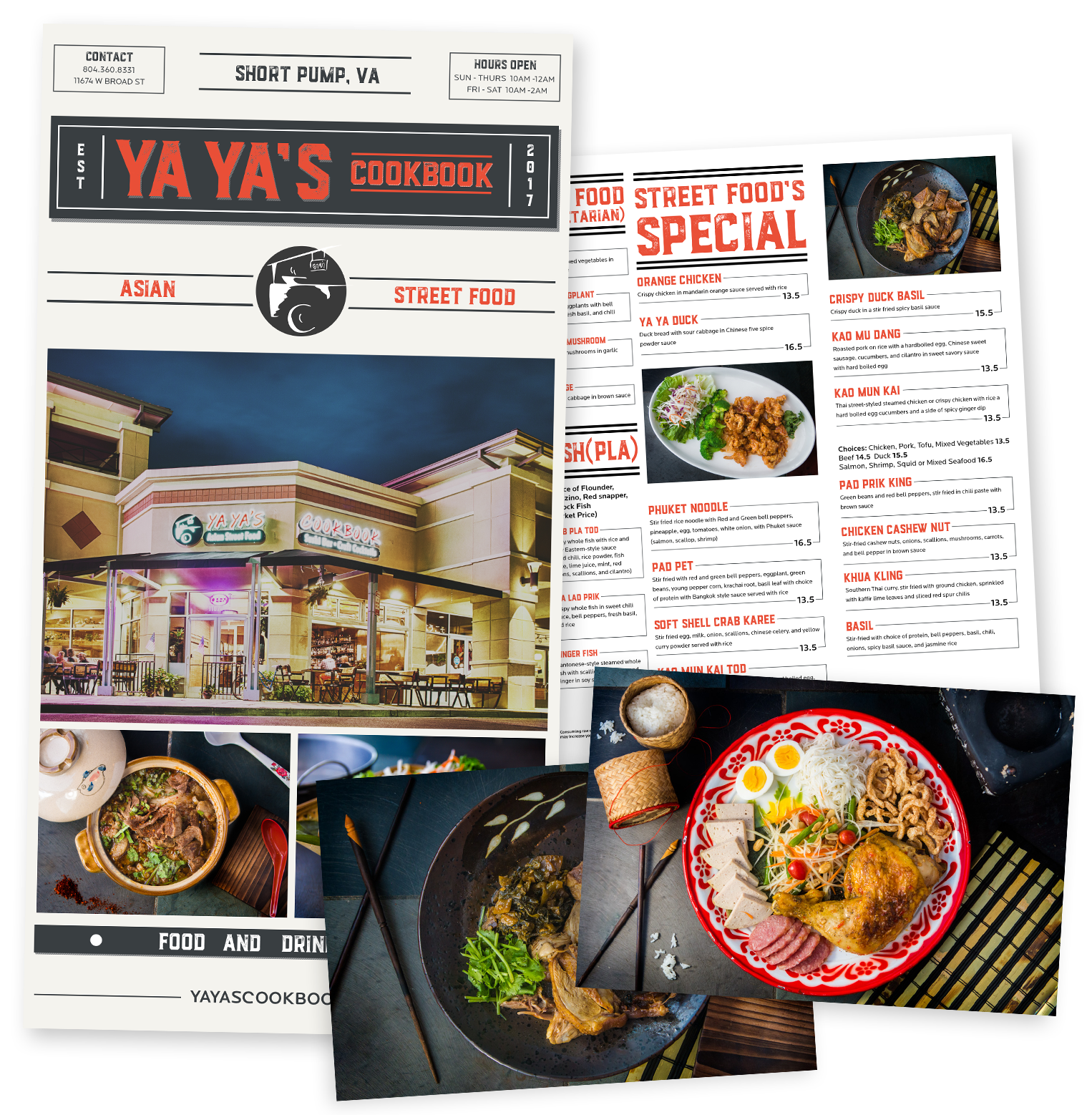A complete branding project that reimagines a Thai street food restaurant, including logo design, food photography, and a modern menu layout that elevates the street food experience.