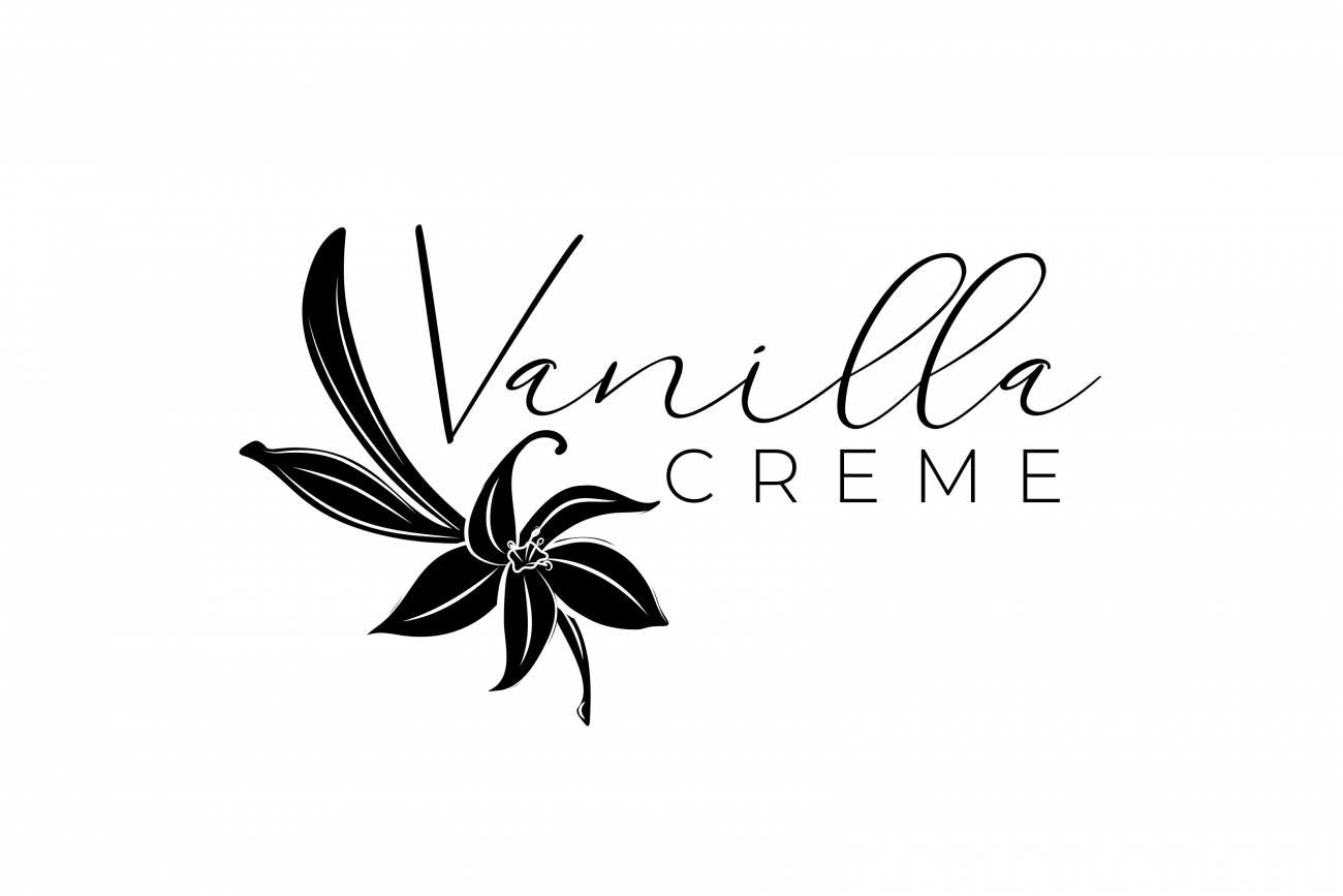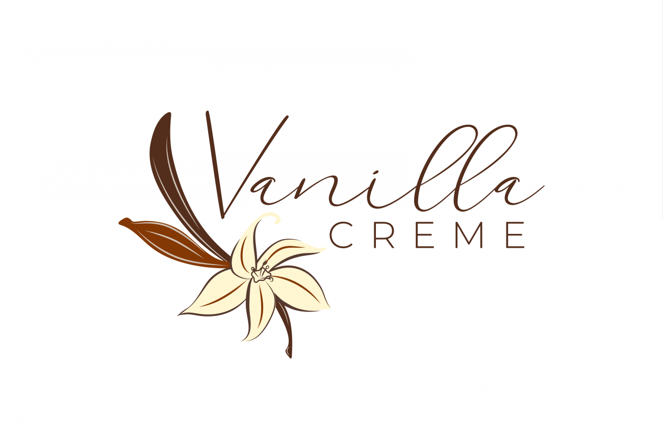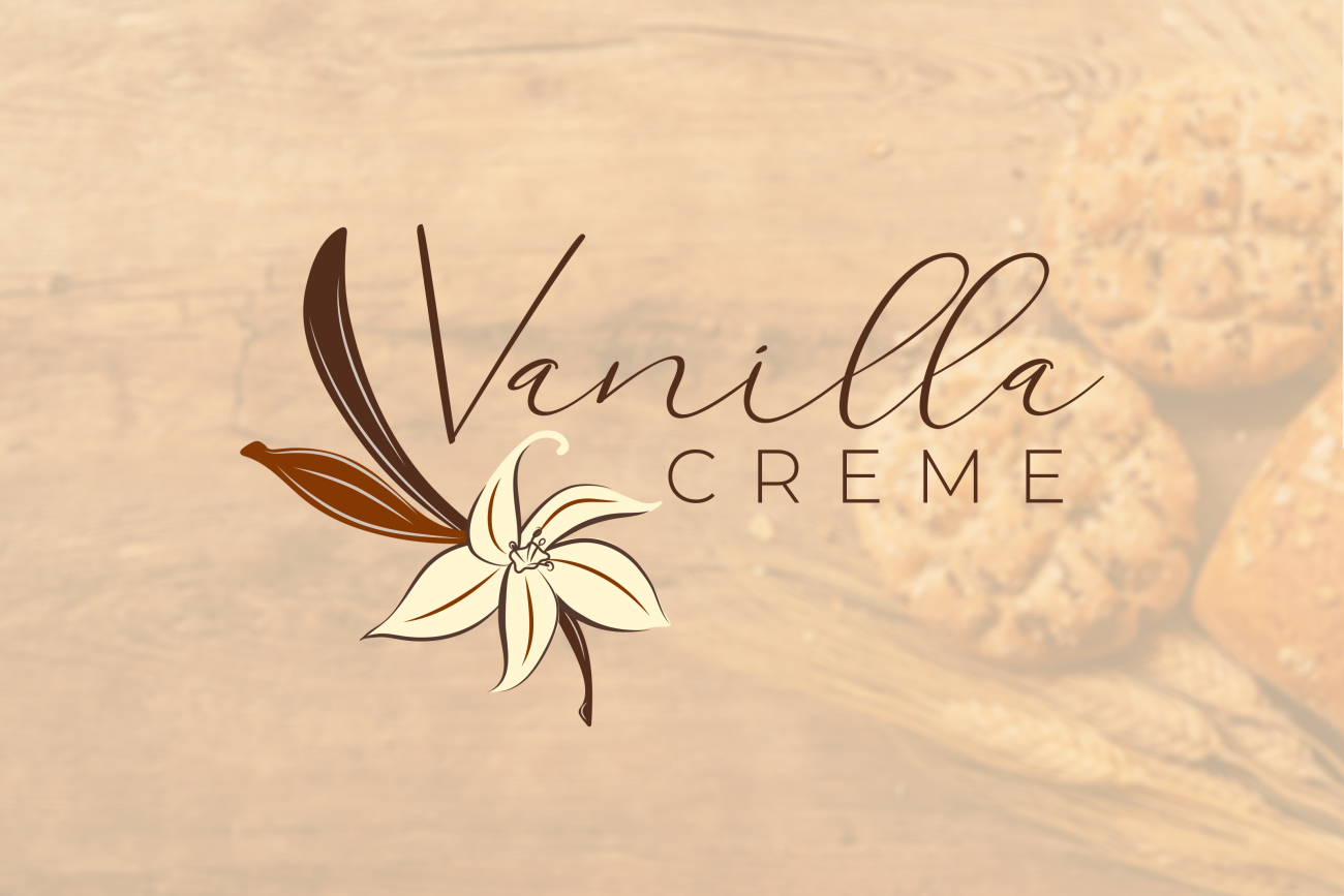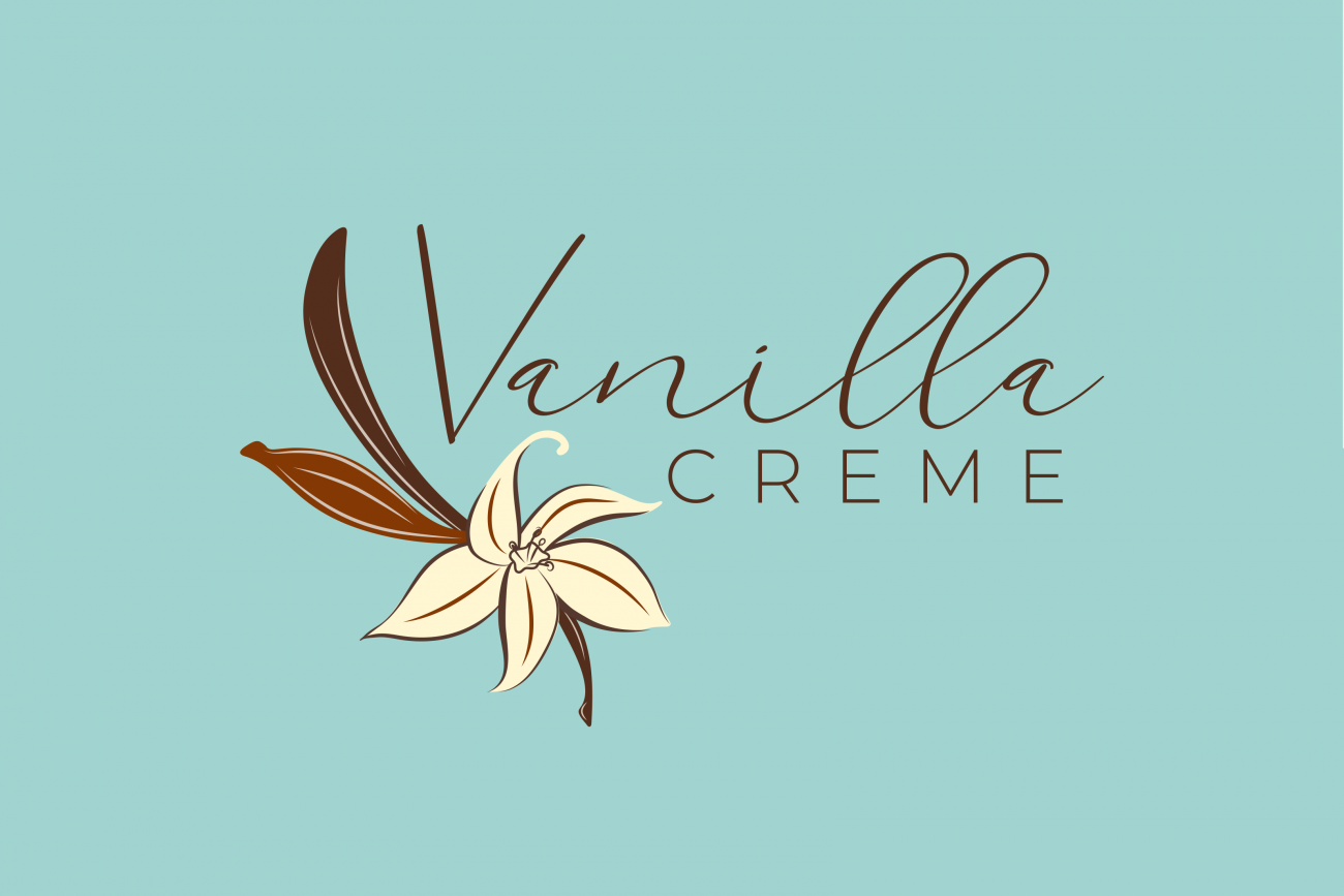 The hand-written cursive typeface for “Vanilla” adds warmth and personality, keeping with the handcrafted feel of the brand, while the clean sans-serif of “Creme” balances it with a modern, polished touch.