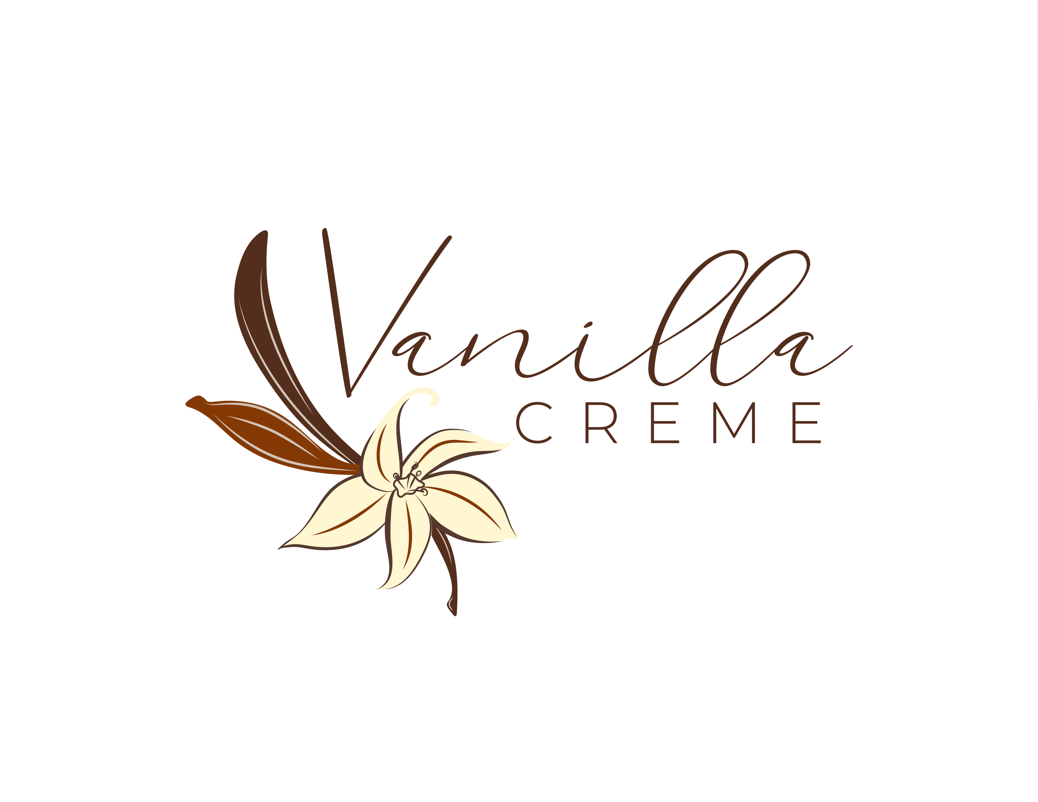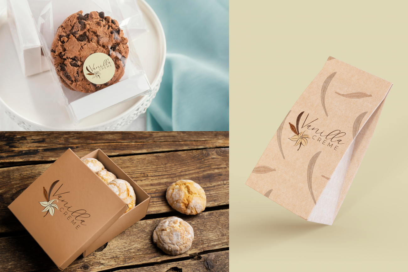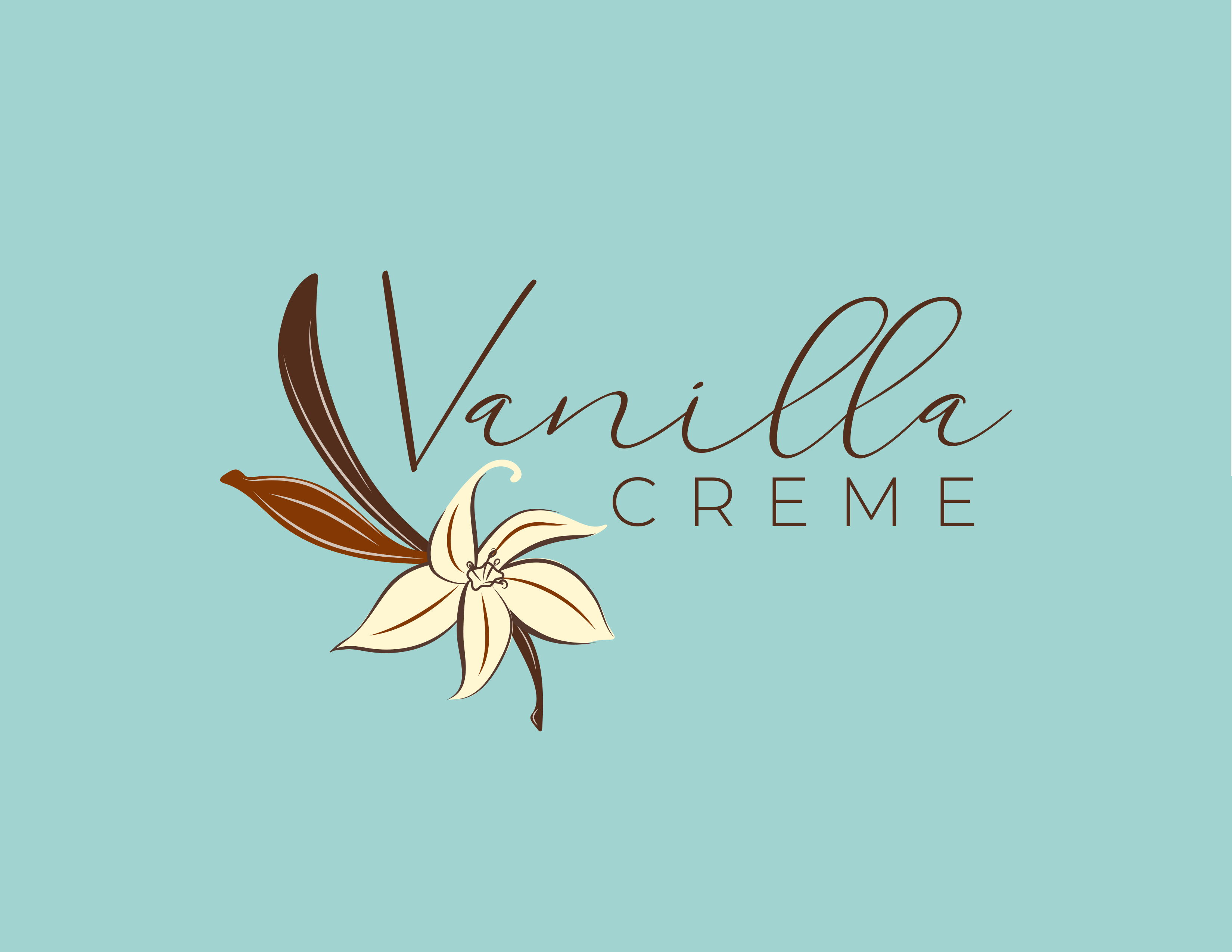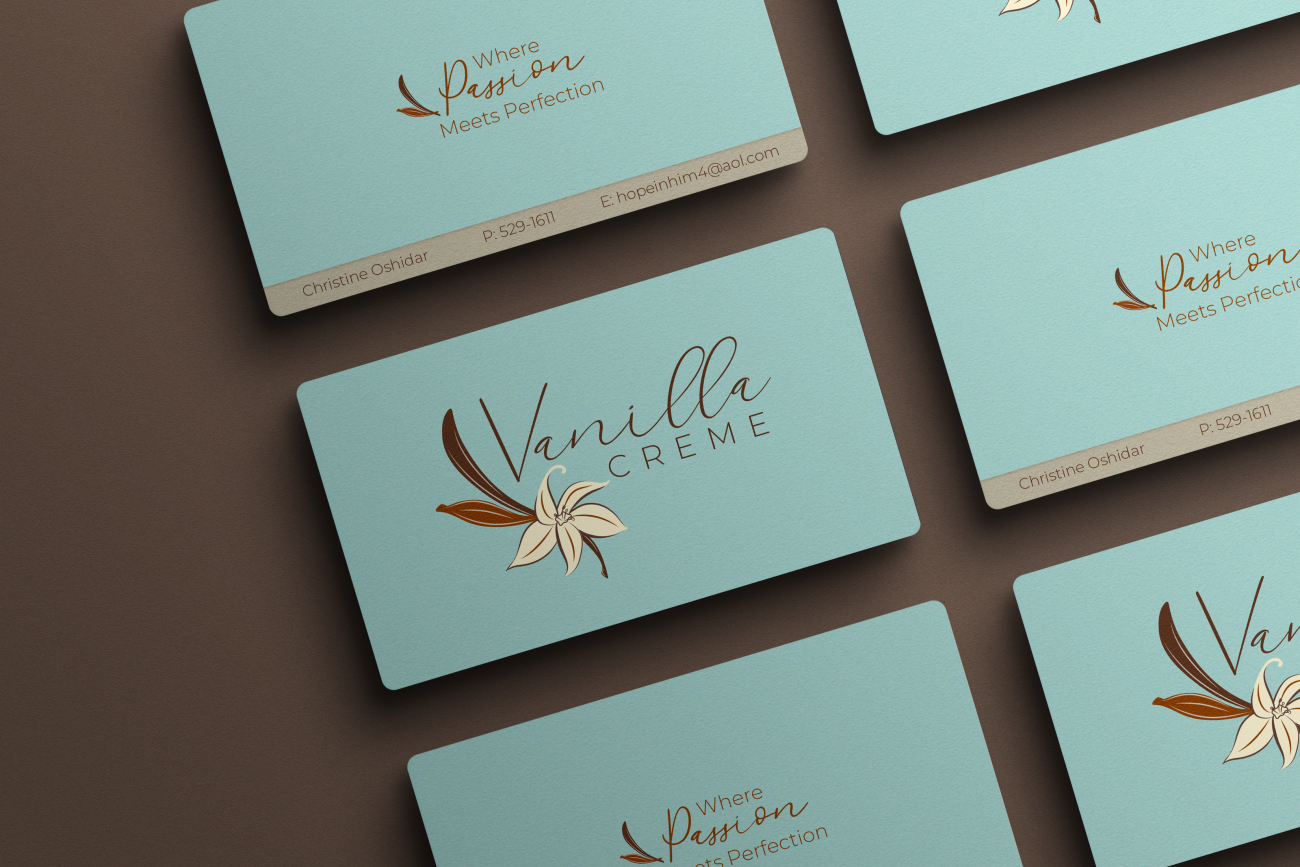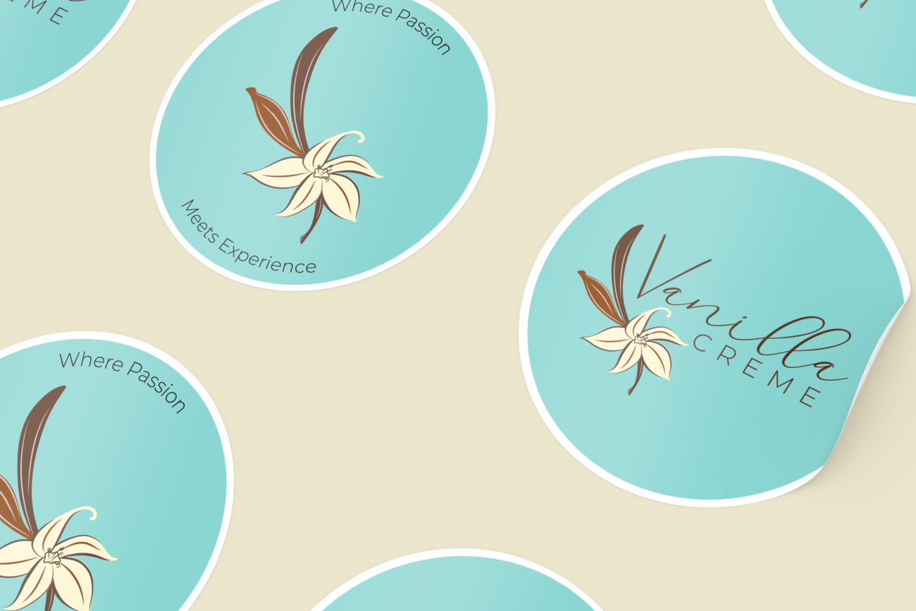 The hand-written cursive typeface for “Vanilla” adds warmth and personality, keeping with the handcrafted feel of the brand, while the clean sans-serif of “Creme” balances it with a modern, polished touch.