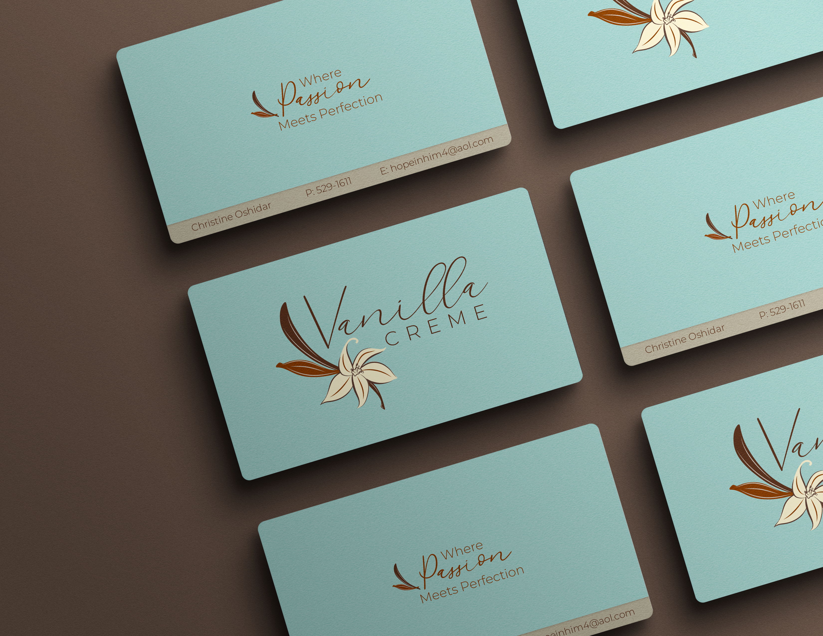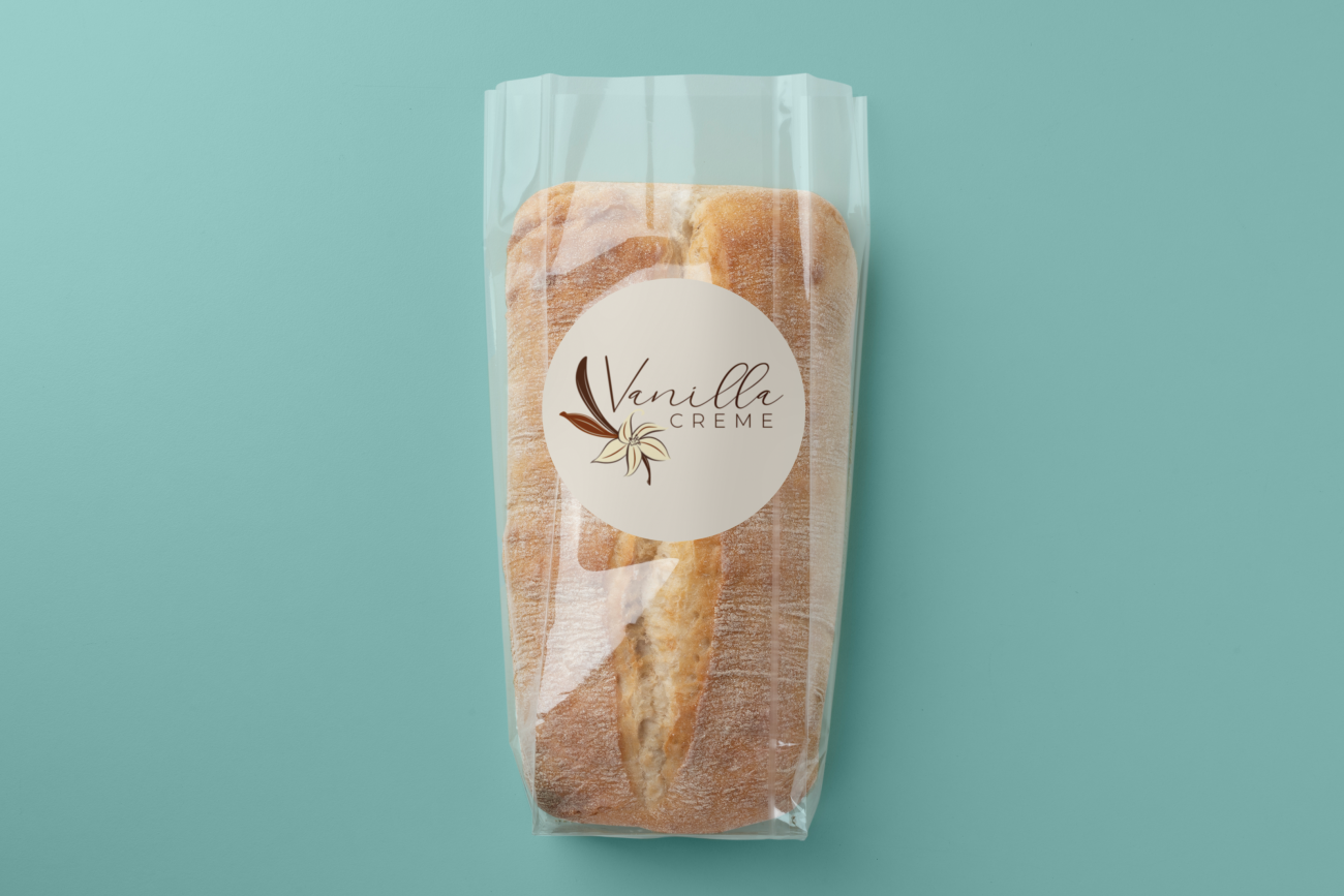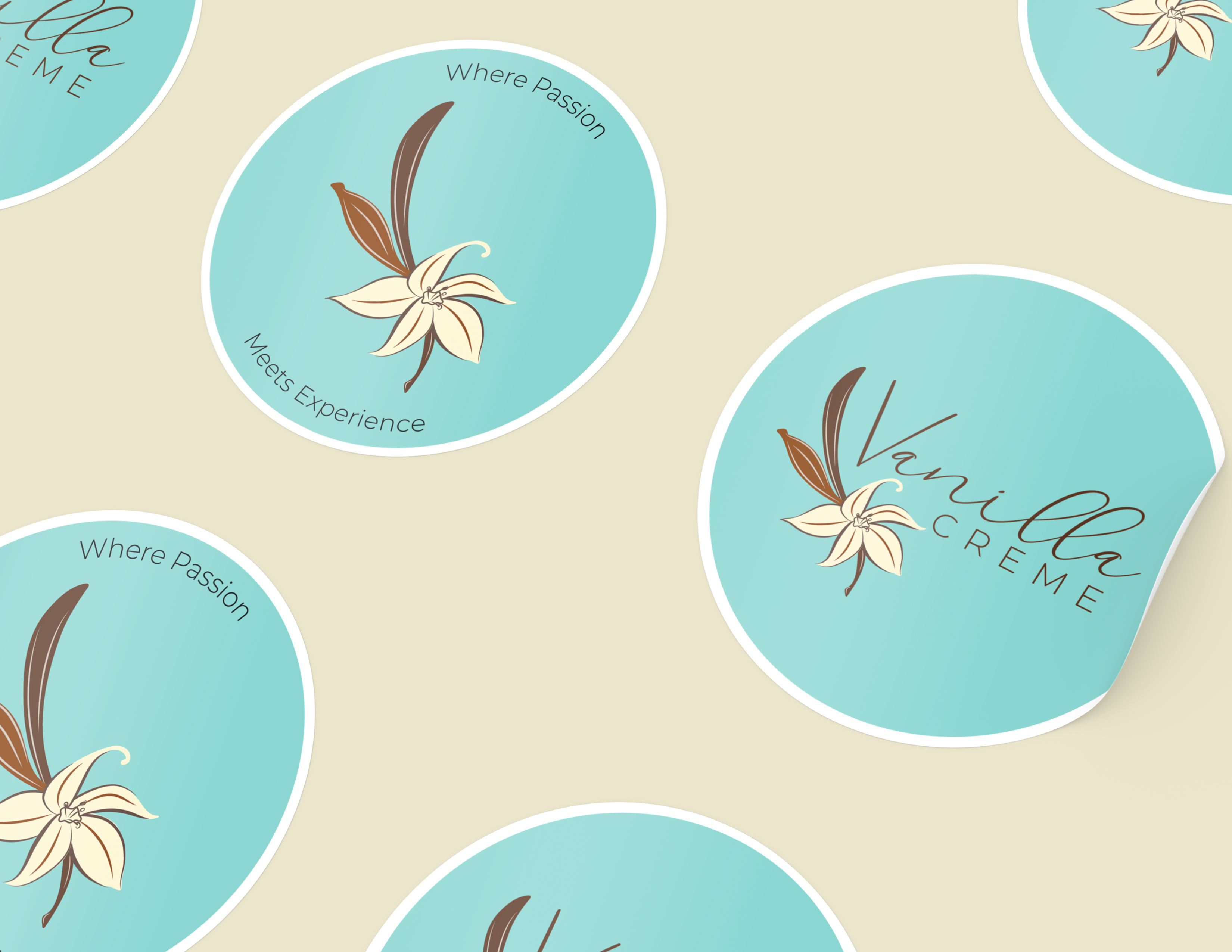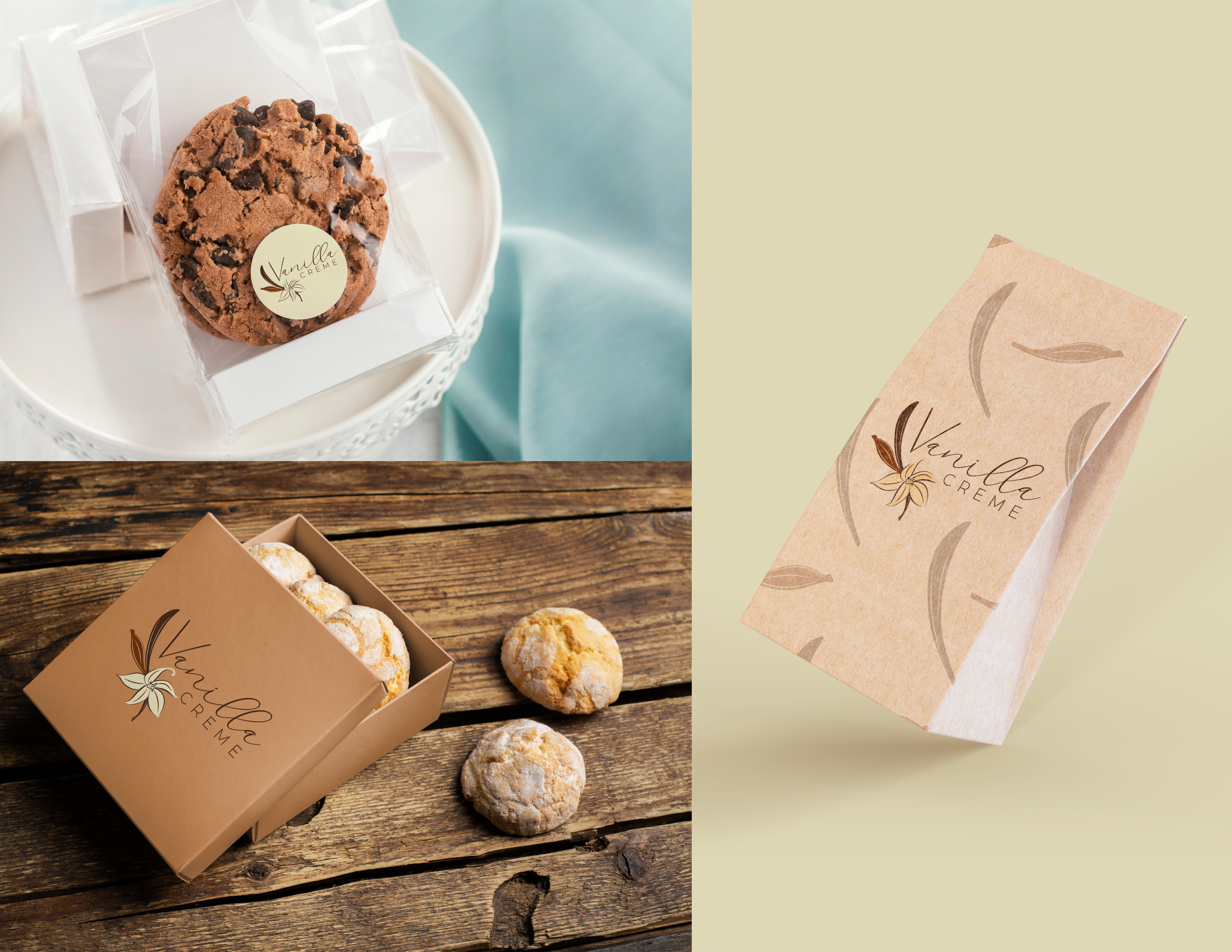 The hand-written cursive typeface for “Vanilla” adds warmth and personality, keeping with the handcrafted feel of the brand, while the clean sans-serif of “Creme” balances it with a modern, polished touch.