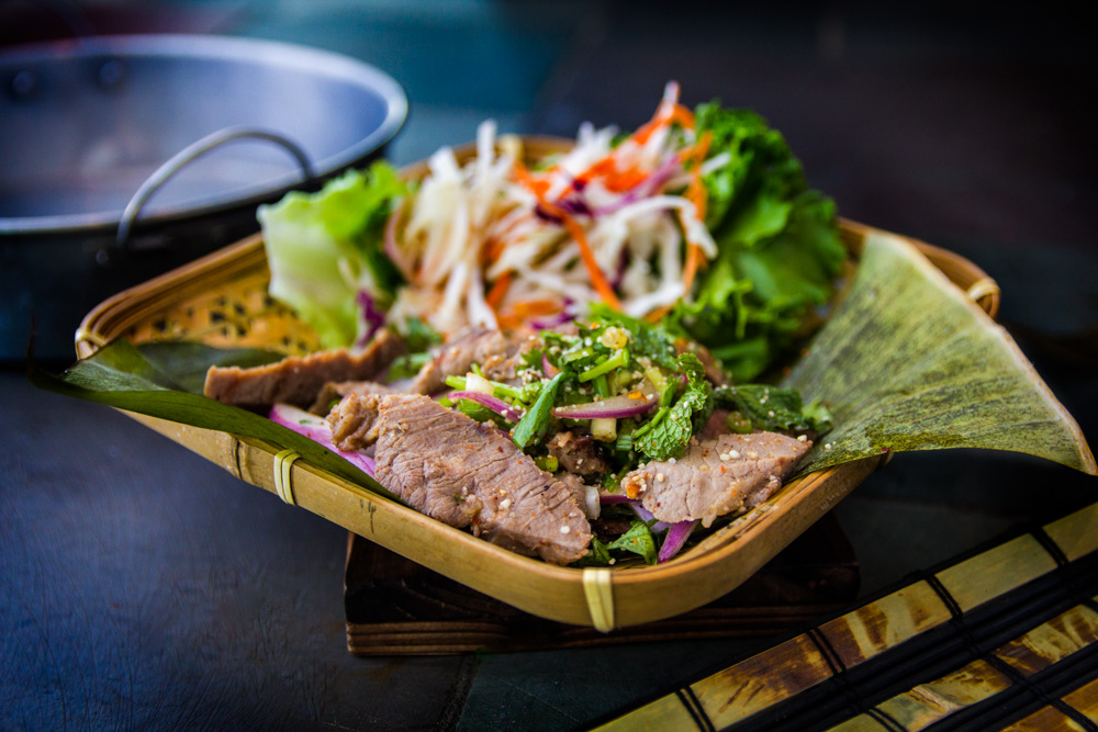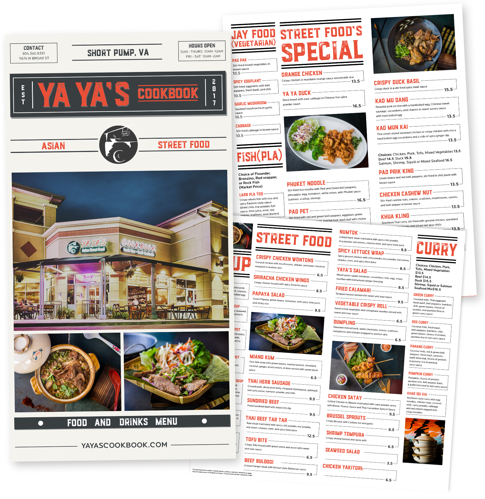 Design a cohesive brand experience for an upscale Thai street food restaurant, including a logo, food photography, and a menu layout.